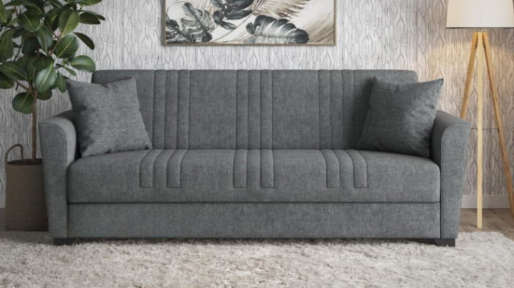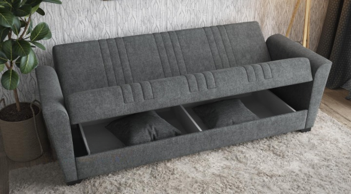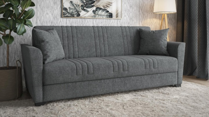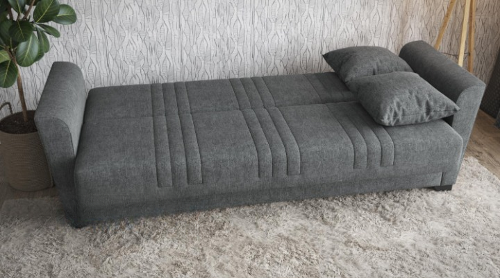 Създаден да впечатлява със своя външен вид, диван Джина е и функционален – с минимално усилие се превръща в комфортно и просторно легло с размери 102/180 см, благодарение на клик-клак механизъм. Диванът пристига в комплект с две възглавнички, които ще станат любимият ти помощник за следобедна дрямка. Под седалката ще откриеш още един плюс – ракла, в която можеш да съхраняваш вещите, които искаш да скриеш от погледа си, за да придадеш спретнат и подреден вид на стаята.