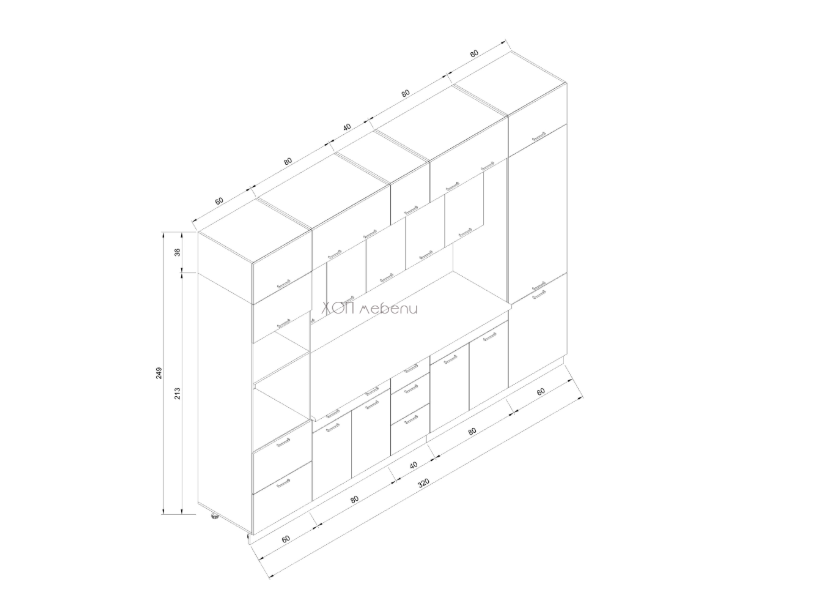 Цената е само за кухнята и не включва уреди, мивка, аксесоари и гръб!