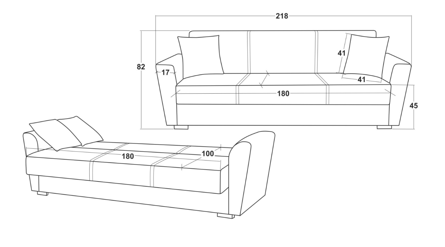 С едно лесно движение диванът се превръща в удобно легло, благодарение на надеждния клик-клак механизъм. Площта за сън е подходяща за кратка почивка или дълъг сън, а комфортът се подсигурява от вложения пружинен пакет Бонел, който осигурява мекота и добро разпределение на тежестта.