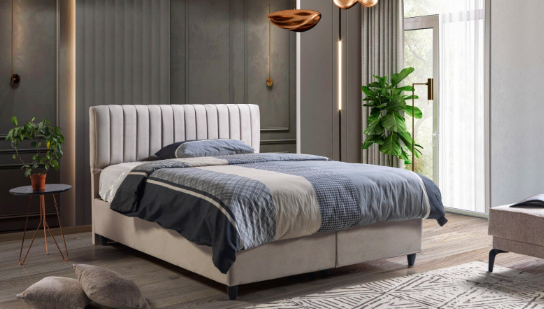 Открийте комфорта и стила с база "NORA" за вашата спалня. Тази тапицирана база с капитонирана табла предлага изискан дизайн, устойчив на времето, и висококачествена изработка. Структурата от стомана гарантира дълготрайност, а подматрачната рамка с двойни амортисьори осигурява допълнителен комфорт. Меката дамаска с копринено усещане е лесна за почистване, а ламинираният паркетен панел на основата включва вентилационни отвори за оптимална въздушна циркулация. Създайте своя оазис на спокойствие с това елегантно и функционално тапицирано легло.